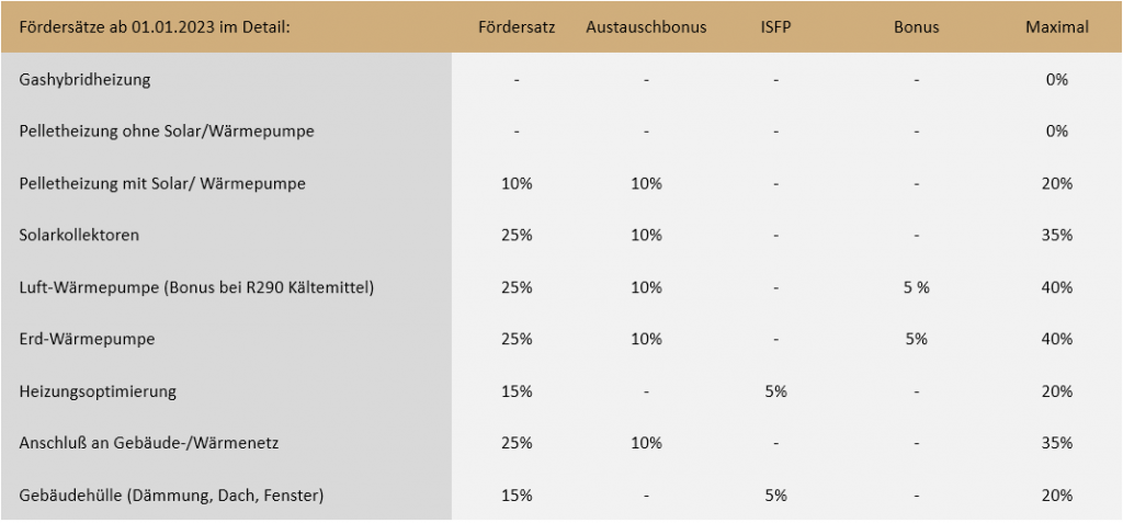 Übersicht der neuen Fördersätze seit 01.01.2023