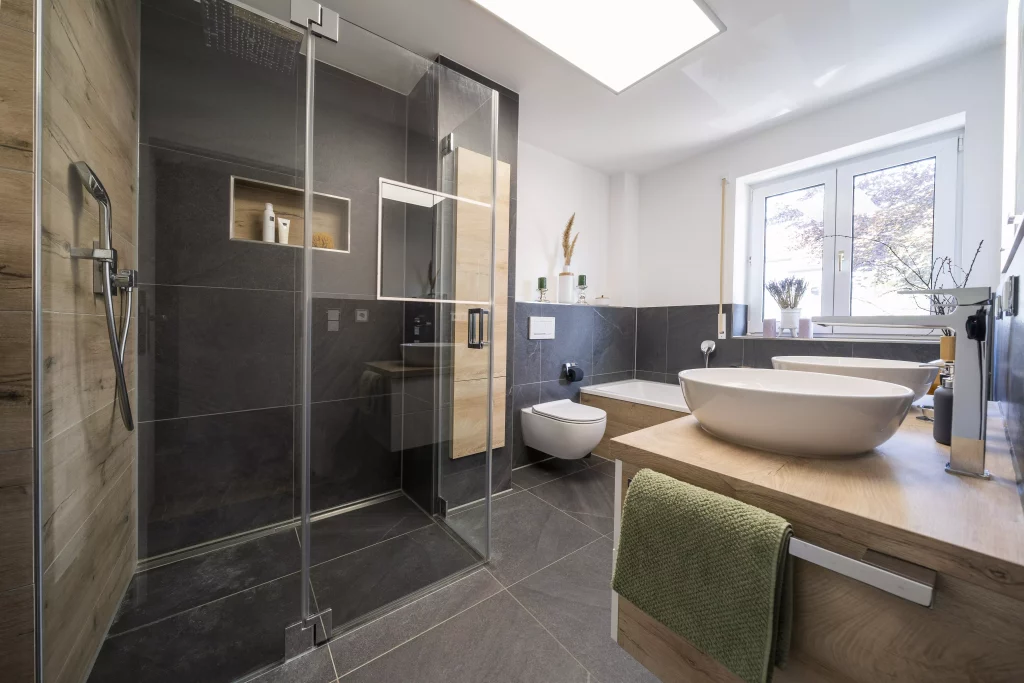 Gemeinsam in den Tag starten und wertvolle Momente mit seinem Partner erleben. Auch unser Badplaner hat die unendliche Liebe zum Detail und der technischen Ausführung bewiesen. Die doppelte Schwingtür kann individuell für einen großen Duschraum oder auch in die andere Richtung für einen größeren Gang positioniert werden.